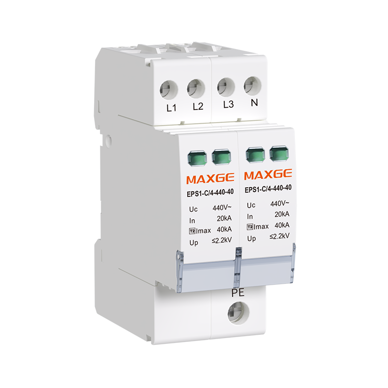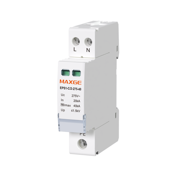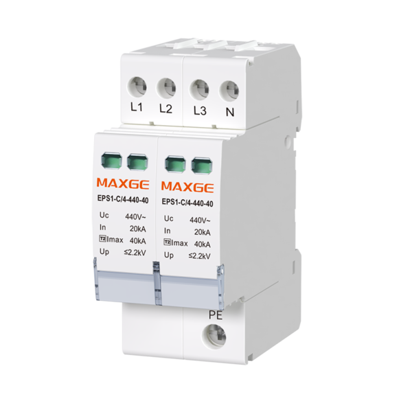 MAXGE EPS1 Series surge protective device is a professional SPD for power distribution safety, designed and manufactured in strict accordance with IEC 61643-11 standard. It provides reliable protection for power supply systems and on-load electrical equipment against lightning surges and instantaneous overvoltage, widely used in commercial buildings, residential quarters, industrial power distribution and other scenarios.