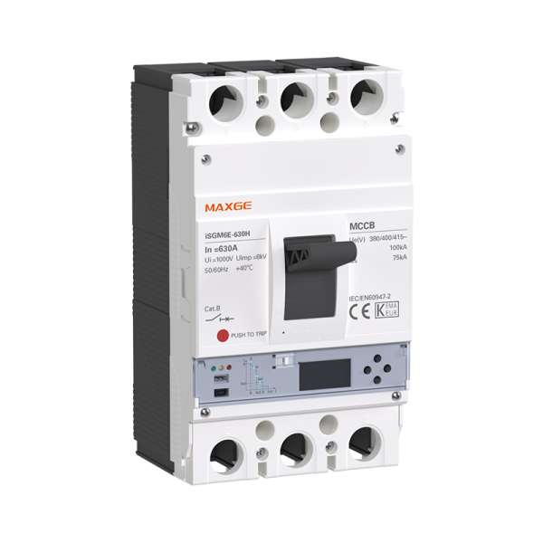 The iSGM6E series electronic-type MCCBs with LCD cover frame sizes from 250A to 1600A with 3/4-pole configurations and IEC60947-2 compliance. They operate at 380/400/415V AC with a rated insulation voltage of 1000V and Icu breaking capacities of up to 85kA (≤250A), 100kA (400-1000A), and 85kA (1600A), ensuring scalable protection across all frame sizes.The series also supports standard accessories (auxiliary contacts, shunt trips) and delivers reliable protection for industrial power systems.