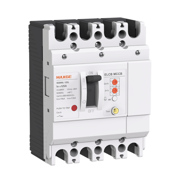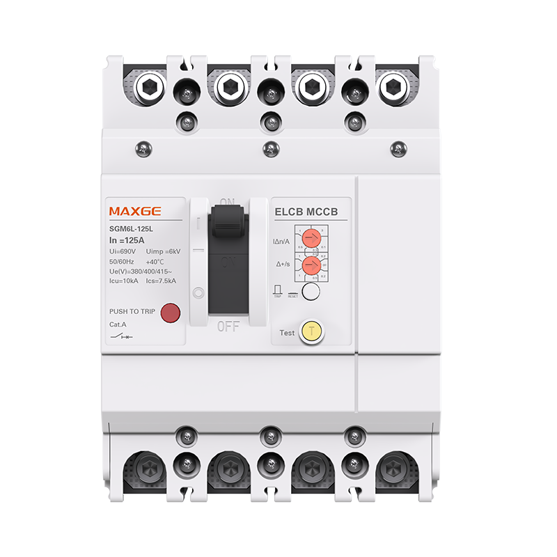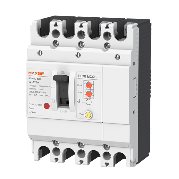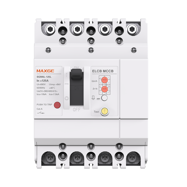 The SGM6L series MCCBs cover frame sizes from 125A to 630A with 4-pole configurations and comply with IEC 60947-2. They feature a rated insulation voltage of 1000V and Icu breaking capacities of up to 50kA (≤250A) and 85kA (≤630A), ensuring scalable protection across all frame sizes. The series also supports standard accessories (auxiliary contacts, shunt trips) and delivers reliable protection for industrial power systems.