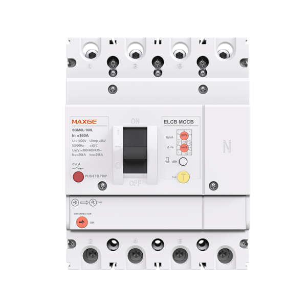 The SGM6L series MCCBs cover frame sizes from 125A to 630A with 4-pole configurations and comply with IEC 60947-2. They feature a rated insulation voltage of 1000V and Icu breaking capacities of up to 50kA (≤125A) and 85kA (≤630A), ensuring scalable protection across all frame sizes. The series also supports standard accessories (auxiliary contacts, shunt trips) and delivers reliable protection for industrial power systems.